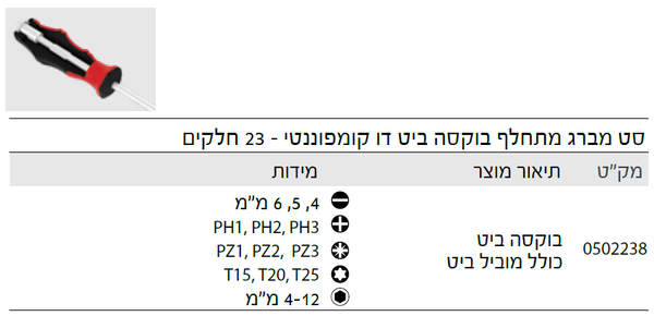 סט מברג מתחלף בוקסה ביט דו קומפוננטי – 23 חלקים מבית b-techtools.